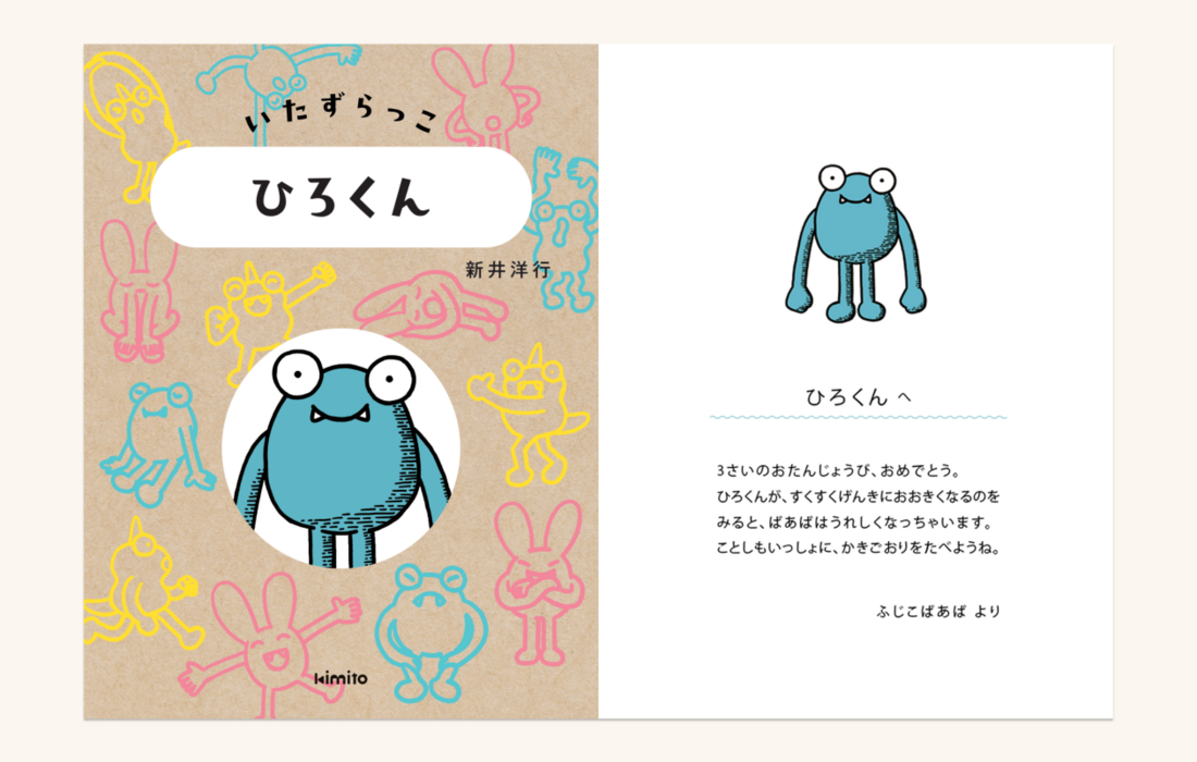 「kimito(キミト)」は、「きみと、つくる物語」をコンセプトにした、主人公の名前を自分で設定できるオーダーメイド絵本レーベルです。自分が出てくる絵本に愛着を持つことで本をもっと好きになり、物語の主人公のように自分の人生を歩んでいく。子どもたちにとってそんなきっかけ作りをしたいという思いから、現役の絵本作家や編集者、デザイナーがチームになり、魅力的な絵本を作り上げています。