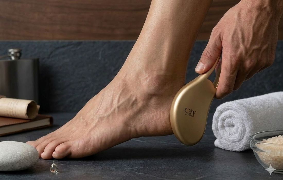 医師・専門家と共同開発した足専用角質ケアツールは、特殊なクリスタル素材とレーザー加工技術を組み合わせ、肌を傷つけることなく、少ない力で角質をしっかりオフ。つるんと心地よい足元へと導きます。バスタイム時にも使用できます。