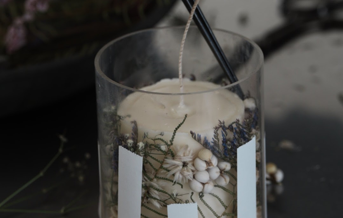 ボタニカルキャンドル(素材選び→花を詰める→ろうをそそぐ)