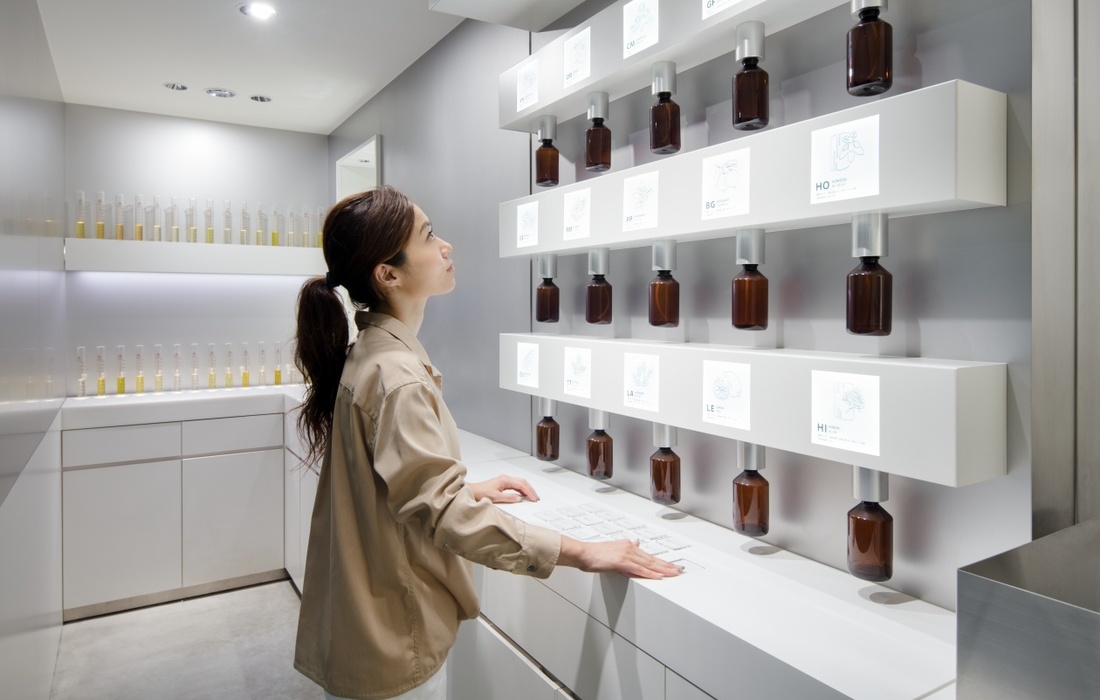 (2)スタッフのアテンドにより、「アロマオイルブレンダー®」でお好きな香りを選ぶ