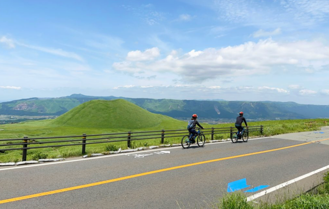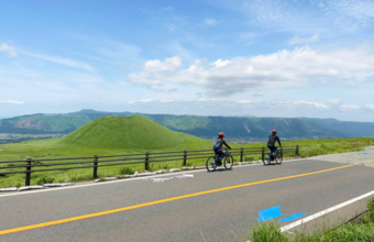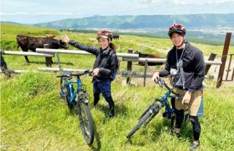 標高1000メートルまで車で自転車を運び、米塚付近からサイクリングのスタートです。高低差約700メートルのルートには景色、動物、草原など見どころ満載。麓に下りたら田園風景の中サイクリングしましょう。ガイドは同行しないため、返却時間までのんびりサイクリングをお楽しみください。