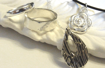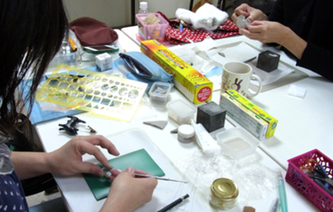 銀粘土は純銀の微粉末からできた粘土で、焼き上げることで純銀に変わります。柔らかい粘土なので、手軽にシルバーアクセサリーを作ることができ、オリジナルの型など、初心者でも楽しめる道具が充実しています。