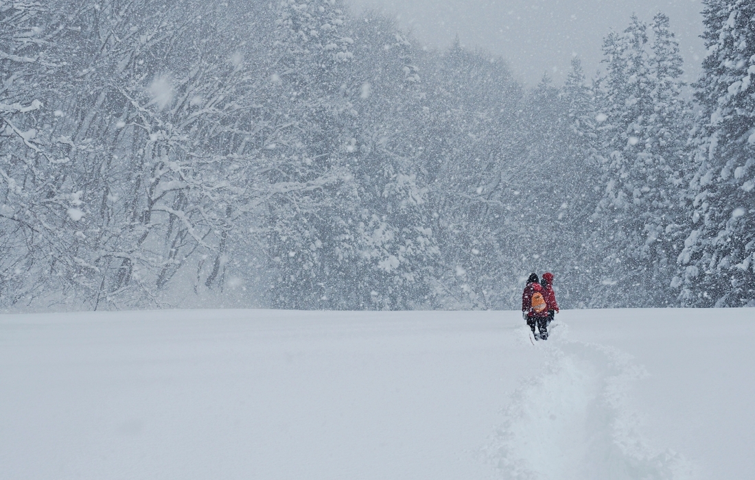 和カンジキとは、古くから日本の降雪地帯で発展した雪の上を歩きやすくする道具です。今ではアルミやプラスチック素材のカンジキが多く出回っていますが、日本の原風景が残る会津だからこそ、伝統的な和カンジキを履いて雪の中を散策しましょう。旧街道を歩いた先に現れるのは貸切の雪遊び場。雪だるまやカマクラ作りなど、子ども連れでも楽しく体験することができます。