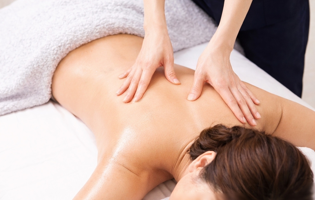 まずはカウンセリングからスタート。当日の体の状態や好みを伝えることで、使用するアロマオイルと施術部位をオーダーメイドで組み立ててもらえます。背面全体・上半身・下半身など、その日ケアが最も必要な部位にアプローチします。