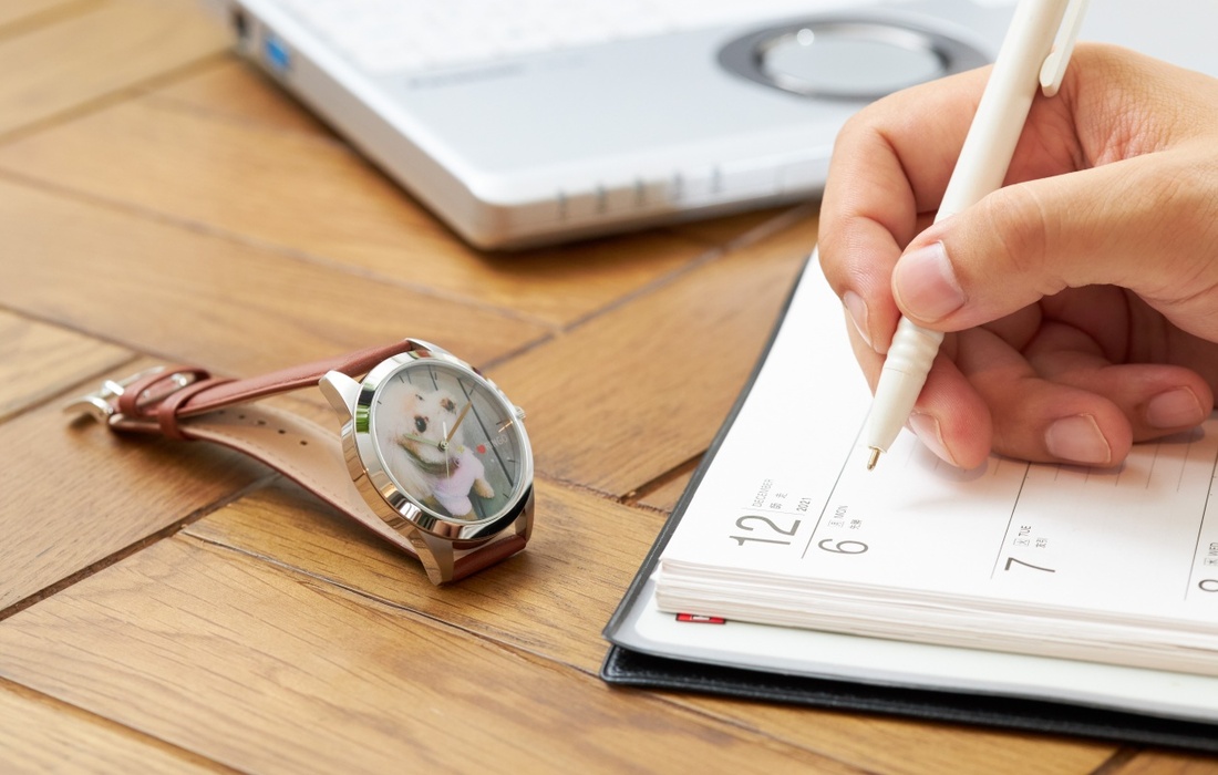 文字盤には、子どもやペット、思い出の写真や、自分で描いたイラストやロゴデザインを挿入できます。さらにケース裏(裏ぶた)への刻印も可能。記念日やメッセージなど思い思いのテキストを刻みましょう。ケースやベルトなどのカスタムパーツはそれほど多くありませんが、文字盤や刻印でシンプルかつオリジナル感のある腕時計を作りたい方におすすめです。
