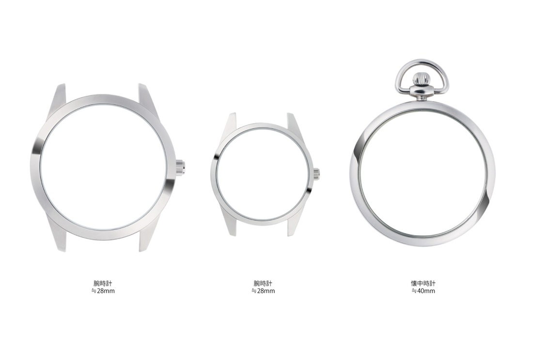 ケースは、40mmか28mmの腕時計、または40mmの懐中時計の3種類。ベルトは8種類のレザーか、メタルメッシュ。針は、先端がとがったペンシル型や細身で繊細な印象のリーフ型など5種類から選べます。