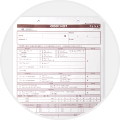 来店してオーダー、またはご自宅に注文キットをお届け、どちらかを選んでお申し込みいただきます。