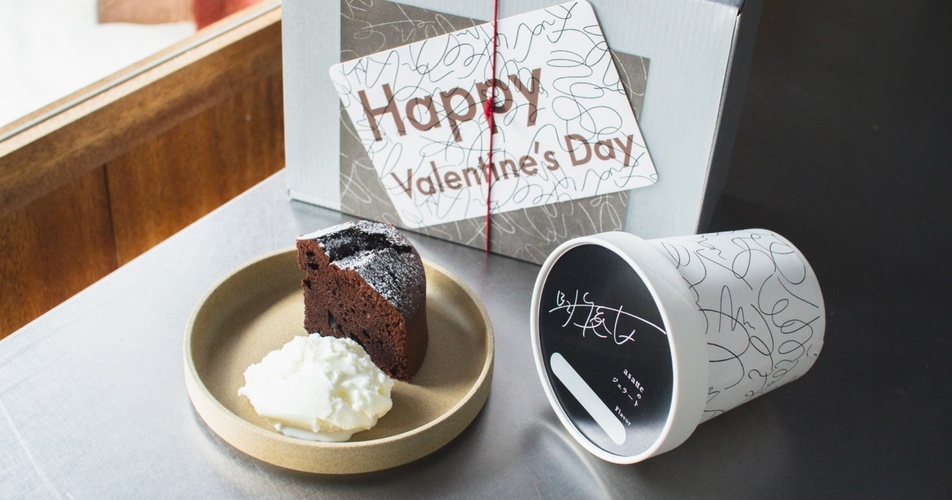 当コースでは、米粉でつくったグルテンフリーのガトーショコラと、定番のフレーバーフレッシュミルクのジェラートのセットが届きます。