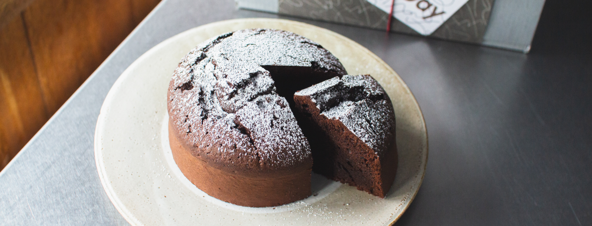ガトーショコラはフランス・ヴァローナ社のチョコレートを使用。ブラジル産の良質なカカオで作られたチョコレートは、アプリコットやマンゴーを思わせる柔らかな甘酸っぱさが特徴です。後味にはしっかりとした苦味も感じられます。しっとり濃厚でありながら軽やかな口当たりで、米粉を使用しているためグルテンフリーです。セットのミルクジェラートとのハーモニーを楽しむため甘さは控えめです。