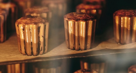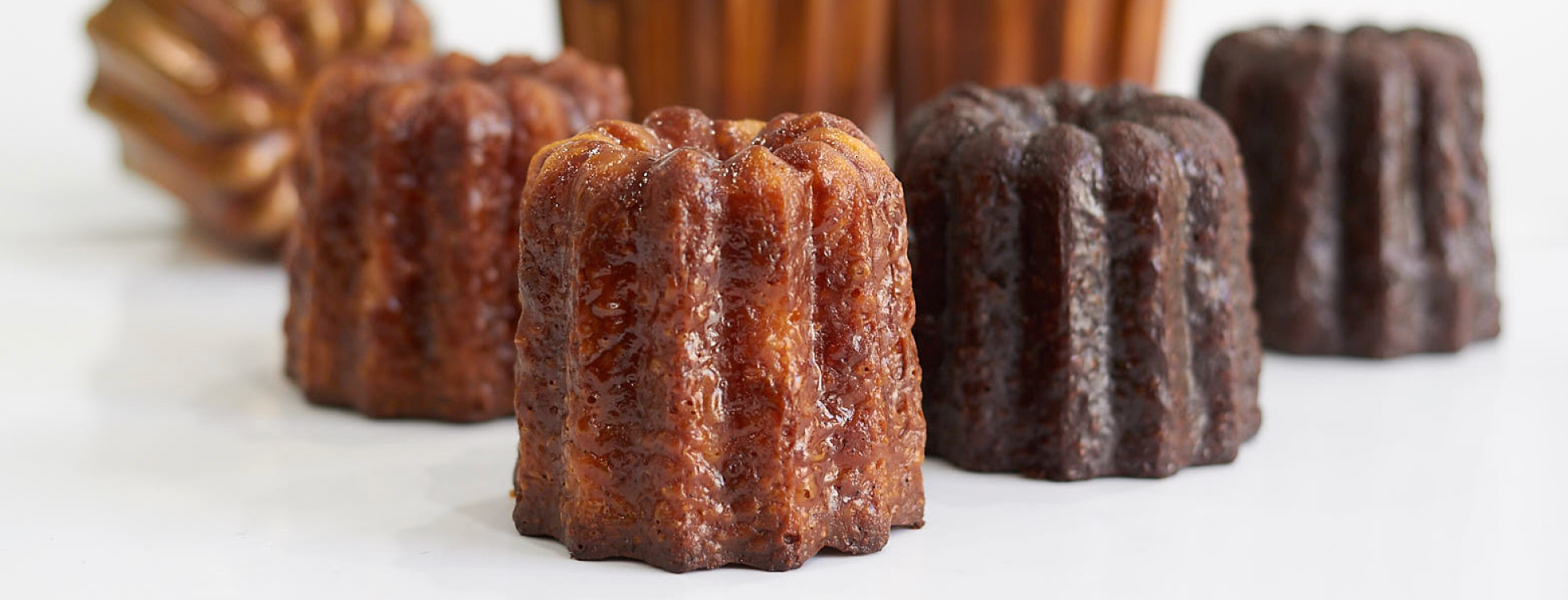 フランス・ボルドー地方の伝統菓子カヌレ。同店のカヌレは、フランス人シェフパティシエのマチュー・パンソン氏が3年かけて作り上げたこだわりのレシピをもとに、その日の温度や湿度を見極めながら、熟練した技術と経験で一つひとつ丁寧に焼き上げられています。当コースで味わえるのは、カヌレのショコラ味。ダークチョコレートをしっかりと練り込み、もっちりとした食感と奥深い味わいに仕上げています。