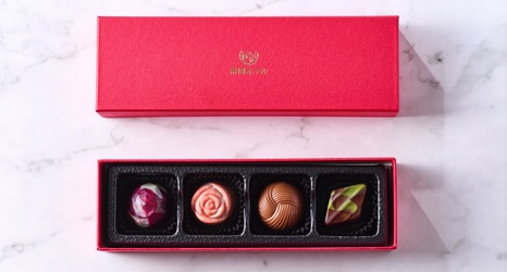 オリジナルロゴ付きの鮮やかなカラーボックスに、多彩な4種類のショコラを詰め合わせたアソート。その日の気分に合わせてお好みのフレーバーを選び、ゆったりとしたひとときをお楽しみください。